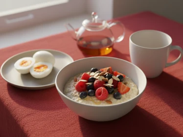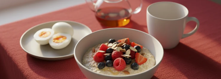 Завтрак должен быть полноценным и содержать белок, сложные углеводы. Например, каша с ягодами и орехами, омлет с овощами, творог с фруктами. Утренний прием пищи запускает метаболизм и дает энергию на первую половину дня.