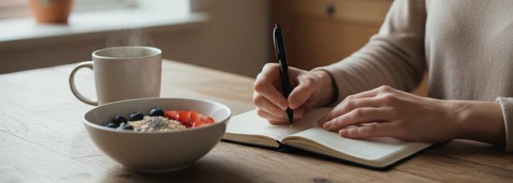 С чего начать? С честного взгляда на текущее питание. Сколько раз в день вы едите, что лежит в тарелке и насколько регулярно вы придерживаетесь режима. Чтобы увидеть полную картину, попробуйте вести простой пищевой дневник — 5–7 дней записывайте всё съеденное и выпитое. Этот инструмент покажет, где перебор с сахаром или фастфудом, а где не хватает белка, клетчатки или системности в питании.