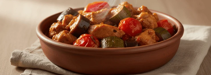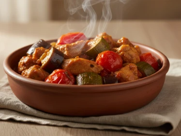 - Тушёная индейка с овощным рагу из кабачков, баклажанов и томатов. Нежно, ароматно и очень полезно.