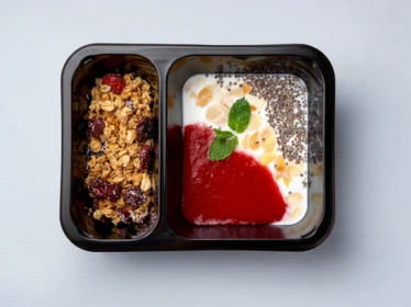 Да, большинство завтраков можно разогревать в микроволновке. Время зависит от мощности устройства — обычно 1–2 минуты. Исключение составляют холодные блюда: смузи боул и гранола с йогуртом употребляются сразу из холодильника.
